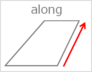 street(道)やriver(川)などのように、長く続くものに沿って存在する場合や移動する場合に使われます。「一緒に動く」というニュアンスが強く、along the trip(旅行中に)やalong the line(方針に従って)という使い方もあります。